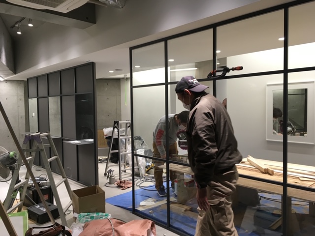 明日の朝には内装工事完了とのことで、朝早くから工事の方々がバタバタと頑張ってくれていました( T_T)