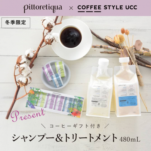 pittoretiquaの11月、12月のキャンペーンで480mlのシャンプー&トリートメントご購入いただくと